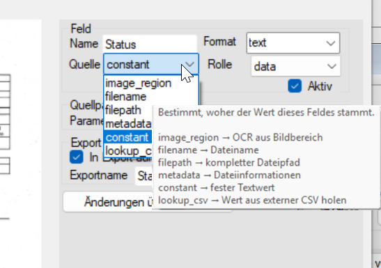 Diese können z. B. für Dateinamen, Exportfelder oder OCR-Zuordnungen verwendet werden.