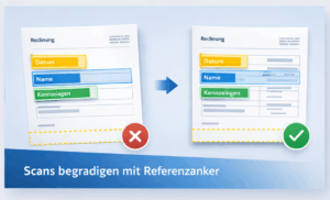 Dabei wird nicht nur Text erkannt, sondern gezielt strukturierte Informationen aus definierten Bereichen extrahiert und verarbeitet.