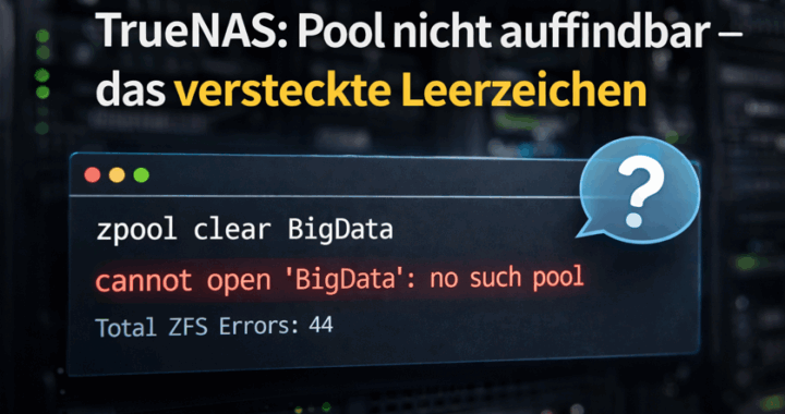 TrueNAS: „no such pool“ trotz vorhandenem Pool – das unsichtbare Leerzeichen-Problem