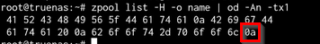 zpool list -H -o name | od -An -tx1